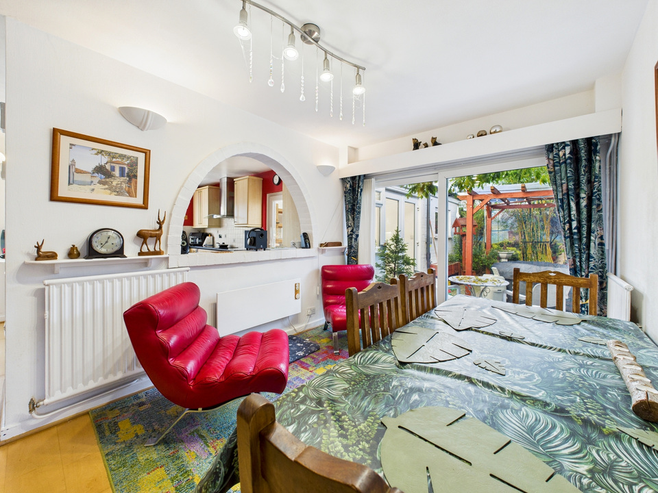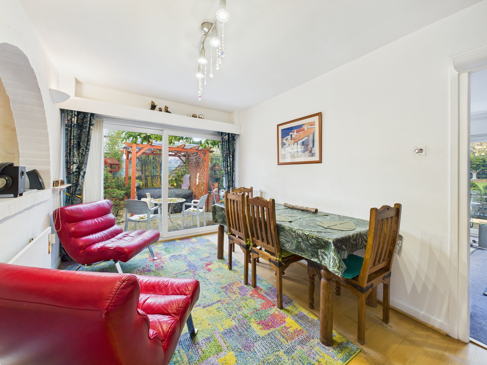 You enter through a useful enclosed porch that opens into a bright and spacious dining hall, offering ample room for family meals or entertaining. Large windows enhance the feeling of light throughout this central space. From here, a door leads into the sizeable living room, which spans the width of the property. This inviting room features bi-fold doors that open out to the rear garden, creating a lovely connection between the house and outdoor space.