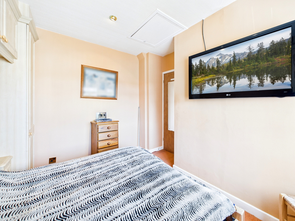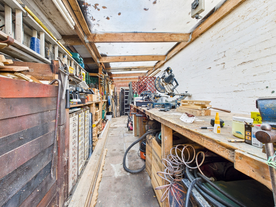 The fitted kitchen sits just off the dining hall and includes a range of integrated appliances. It flows directly into the dining room, making everyday routines easy and sociable. Beyond the kitchen, a practical lean-to provides covered access to the garden, the ground-floor shower room, and the garage, offering excellent flexibility.