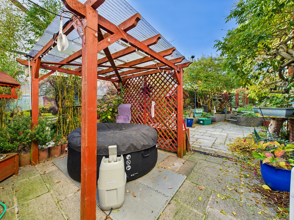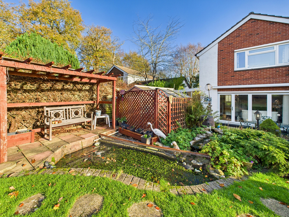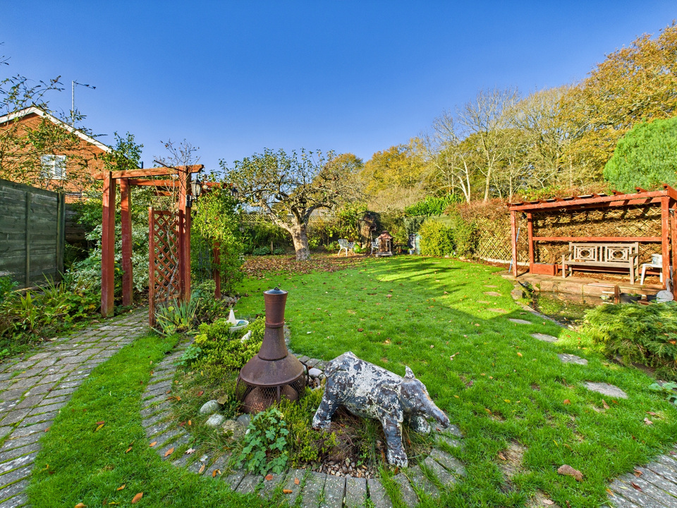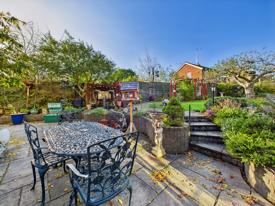 The rear garden is a wonderful feature of this home—spacious, private, and thoughtfully arranged with patio areas ideal for seating and a large lawn framed by mature greenery. It provides a peaceful outdoor space perfect for relaxing, entertaining, or family activities.