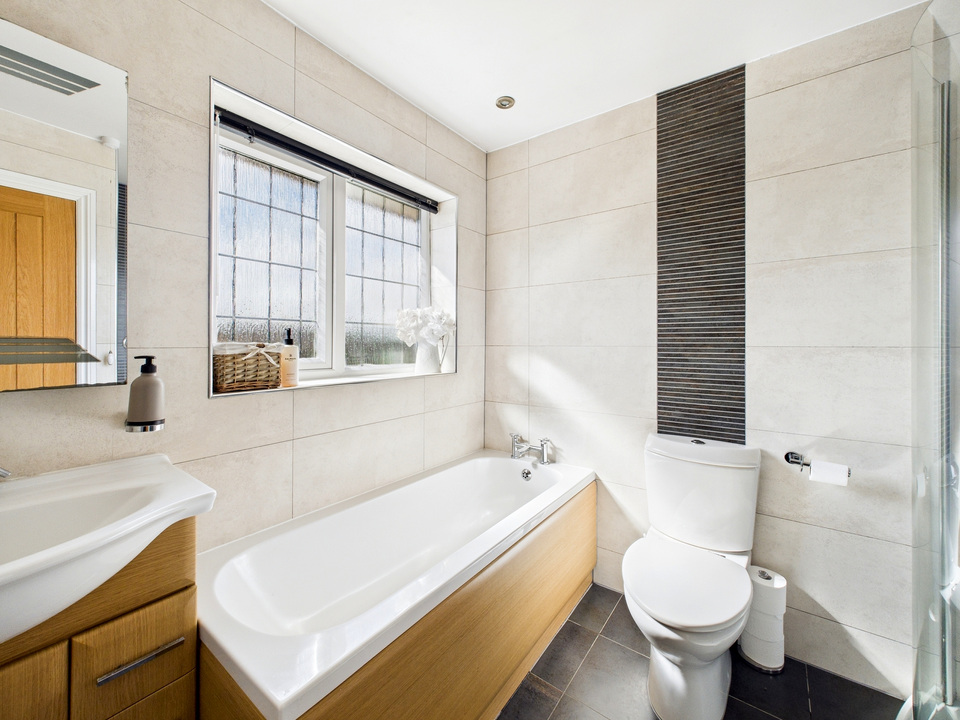 Upstairs, there are three generous bedrooms and a fourth, currently configured as a dressing room. The master bedroom boasts its own en-suite, while the family bathroom is complete with both a bath and separate shower.