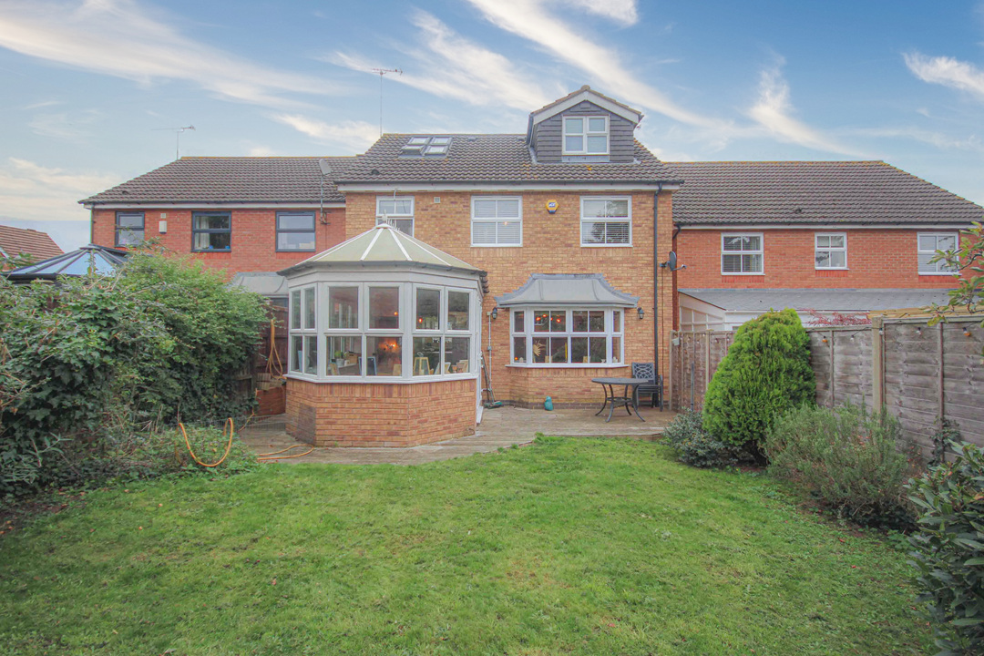 Outside, the rear garden offers both decked and lawned areas, creating a lovely space for outdoor dining and relaxation, with fenced boundaries for privacy.