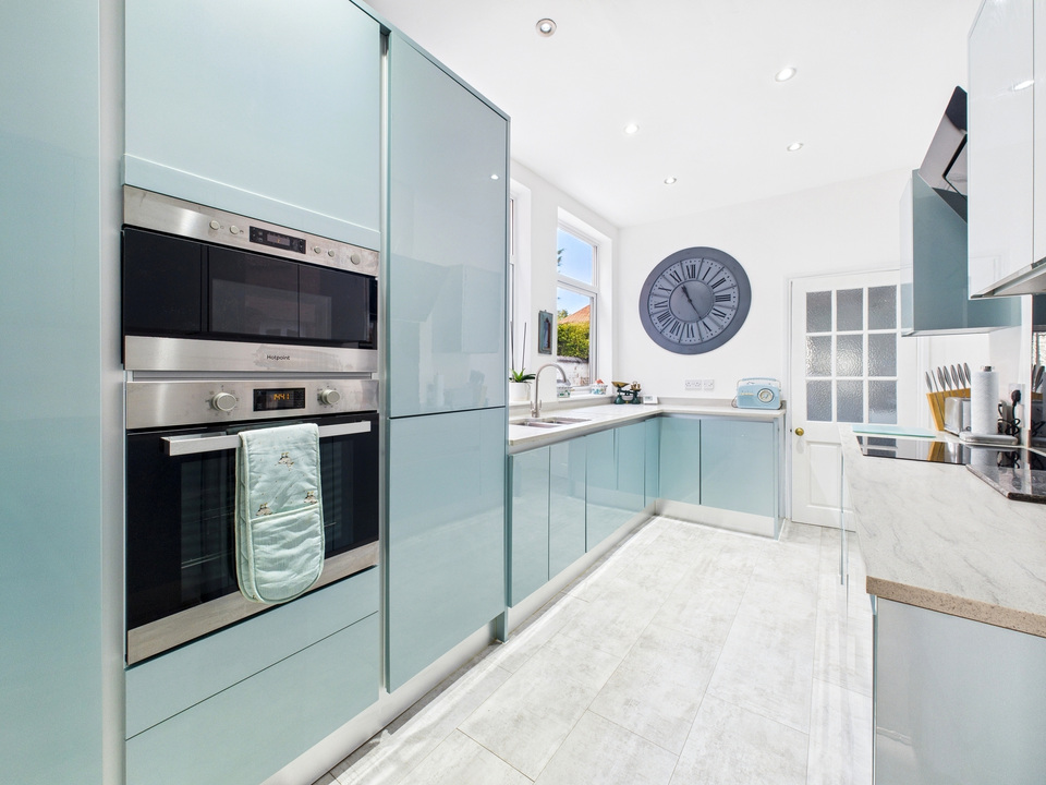The home boasts a sleek, modern kitchen, fitted with high-quality units and a range of integral appliances for ease of modern living. Beyond the kitchen is a newly fitted bathroom/shower room, finished to a superb standard with contemporary fittings.