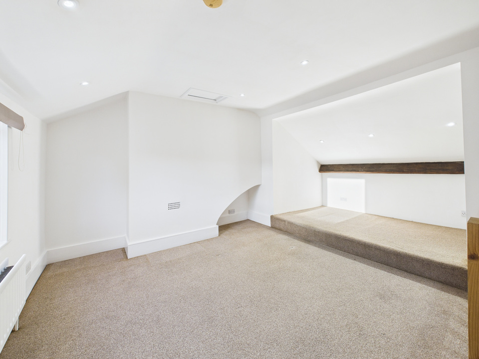 Upstairs, the first floor features three bedrooms — currently arranged as a master bedroom, a dressing room, and a guest bedroom with an en-suite shower room. The converted loft room offers a fantastic social space with elevated views, perfect for relaxing or entertaining.