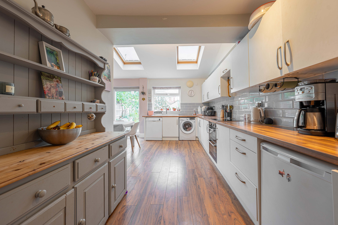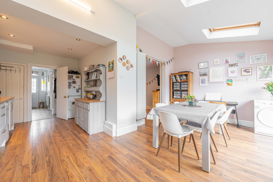 The ground floor comprises two generous reception rooms and a bright, extended kitchen/dining/family space, creating an ideal setting for modern living and entertaining.