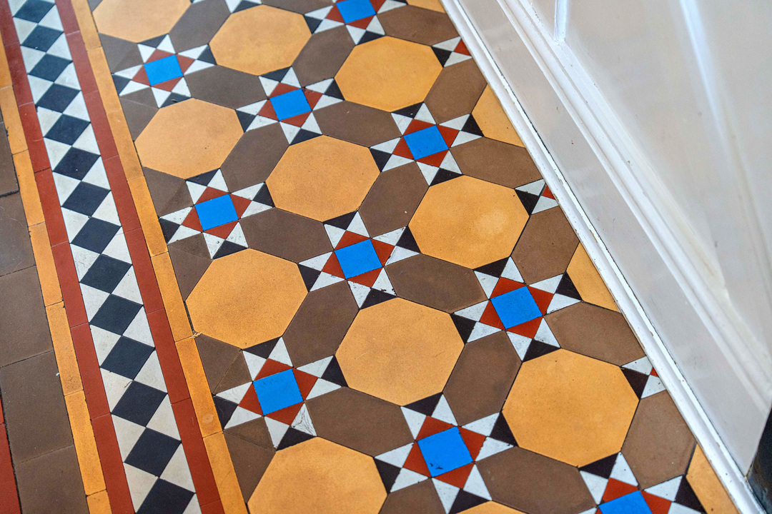 To the front, the property features a private driveway, while to the rear lies a delightful south-facing garden that enjoys sunshine throughout the day. The entrance hall retains its original Minton tiled flooring, offering a wonderful first impression and a glimpse of the home’s timeless character.