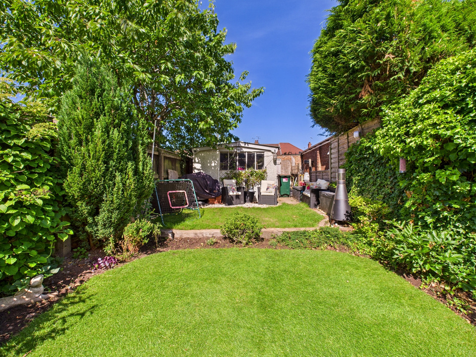 To the rear of the property, you’ll find a beautifully landscaped garden, designed for both leisure and functionality. The patio area is perfect for outdoor dining or entertaining during the warmer months, while the well-kept lawn provides space for children to play or simply enjoy the outdoors. There is also a garage at the rear of the property with convenient vehicle access from a nearby street, adding secure parking or useful storage.