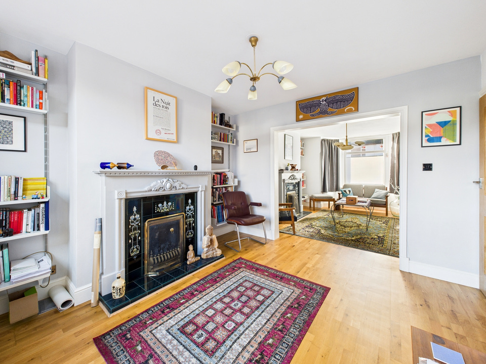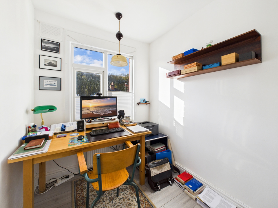 Upstairs follows the classic layout of two generous double bedrooms and a well-proportioned single, currently used as a stylish home office, along with a modern family bathroom.