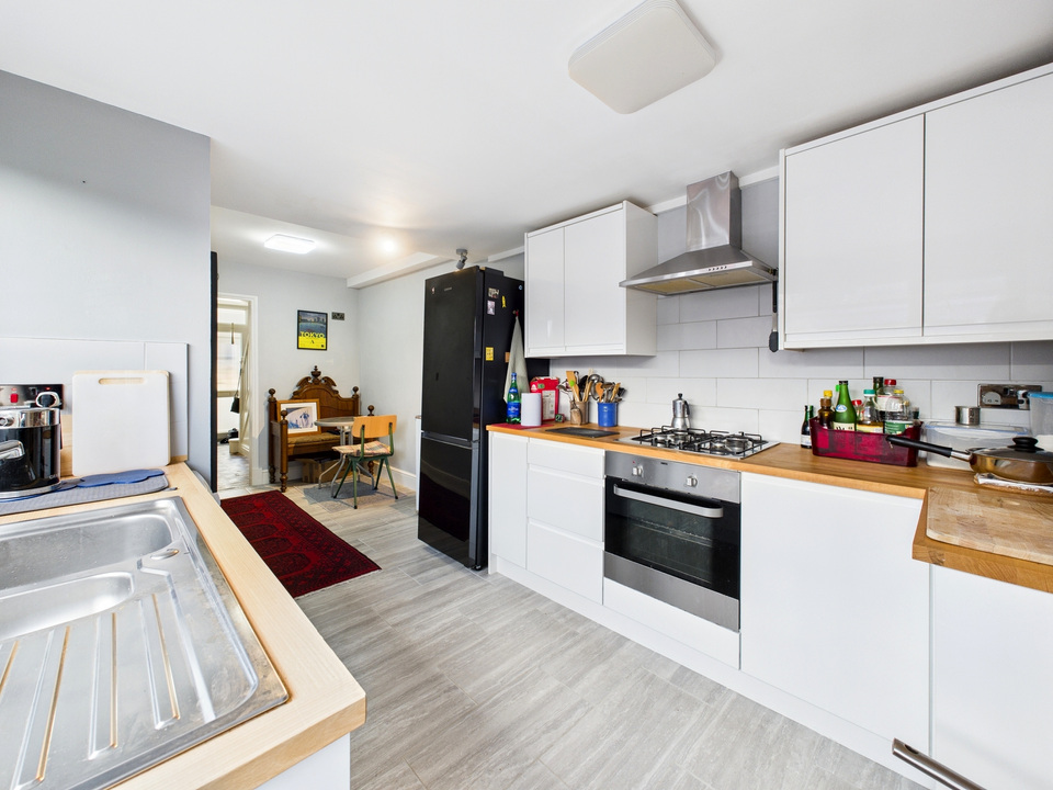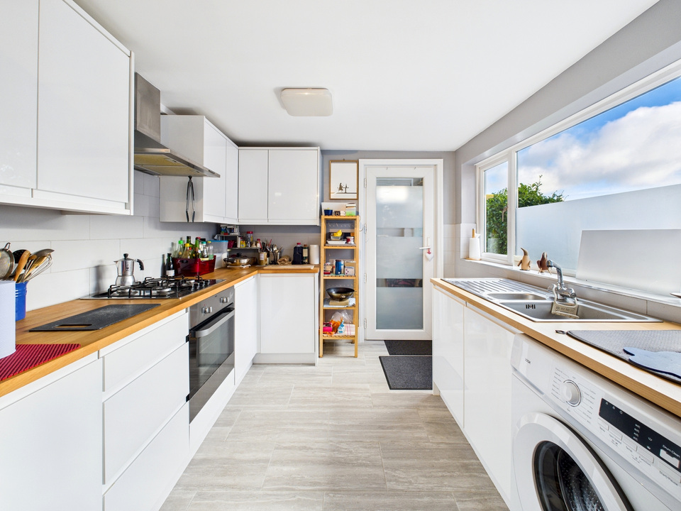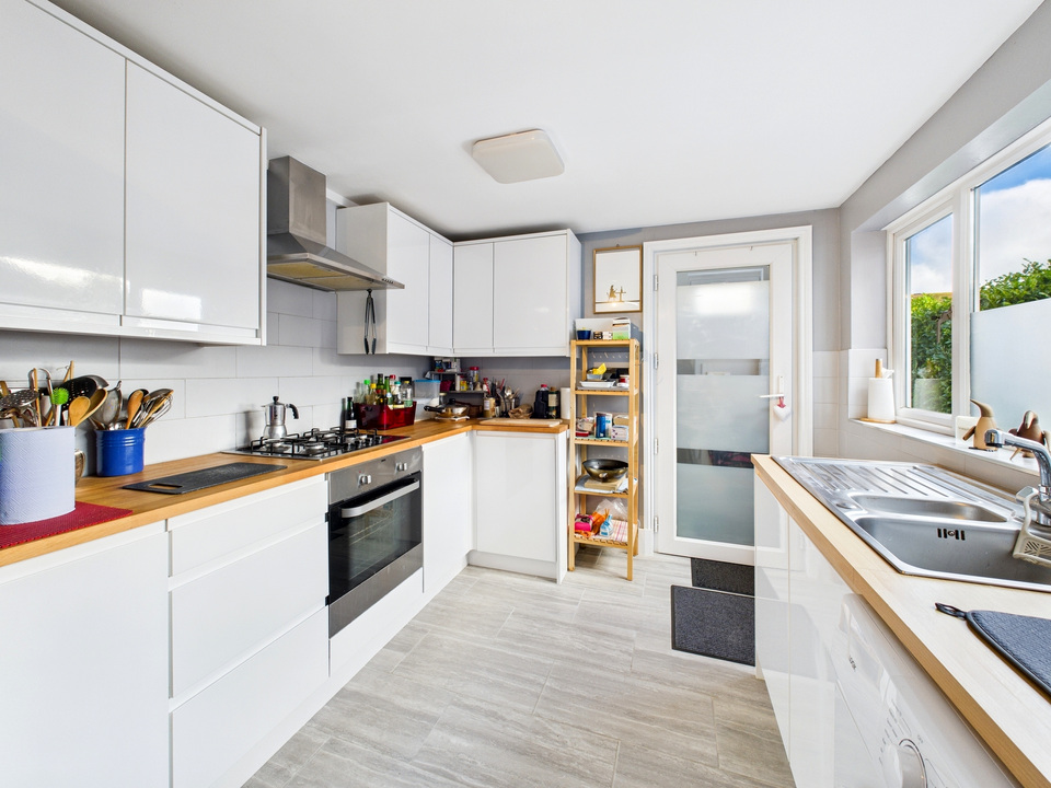 The spacious open-plan living/dining room features French doors to the garden and can be enjoyed as one flowing social space or easily arranged as two separate reception rooms. The sleek galley-style kitchen offers excellent storage and worktop space, and even the space for a dining table. At the end, for the added convenience, a downstairs WC.
